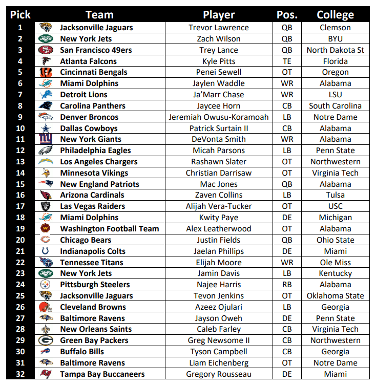 | 1 | Carolina Panthers | Bryce Young, QB, Alabama | Bryce Young, QB Alabama |